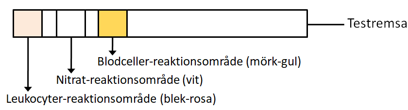 Självtest för urinvägsinfektion som upptäcker tydliga tecken på urinvägsinfektion. Testet görs snabbt och enkelt hemma. Resultatet avläses efter ca 2 minuter. Testet ger utslag för leukocyter, nitrit och blod i urinen.