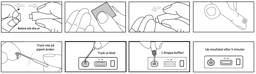 - Punktera fingret med lansetten (se nedan för mer detaljer kring lansetten)